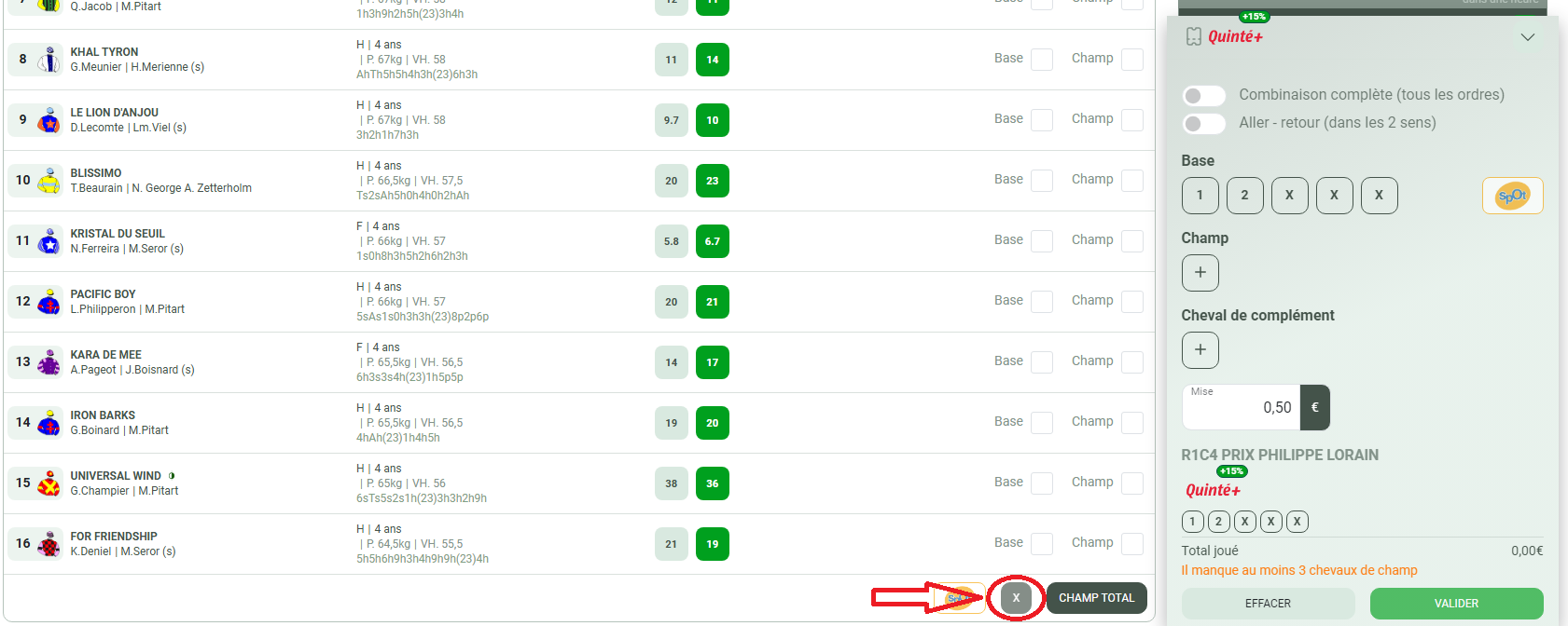 Selecteer vervolgens het aantal resterende « X » om je inzet te voltooien.