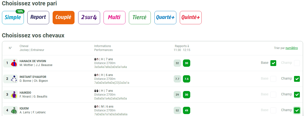 Nu kun je je « Couplé Gagnant » en « Couplé Placé » weddenschappen in een enkele weddenschap plaatsen!